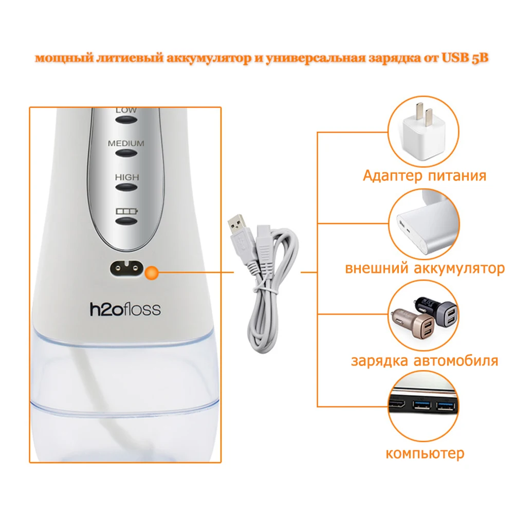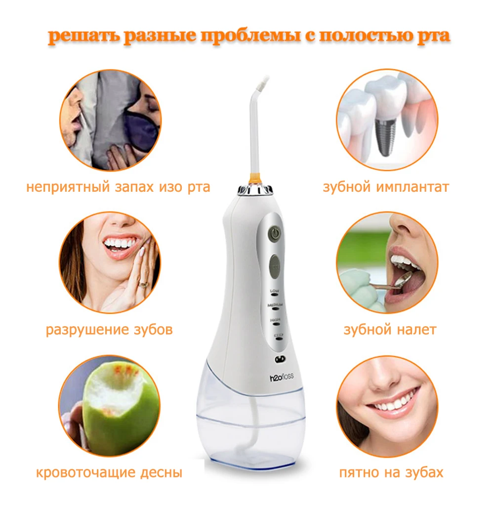 Flash Deal h2ofloss portable oral irrigator usb rechargeable water flosser Dental Water Jet 300ML Water Tank Waterproof Teeth Cleaner