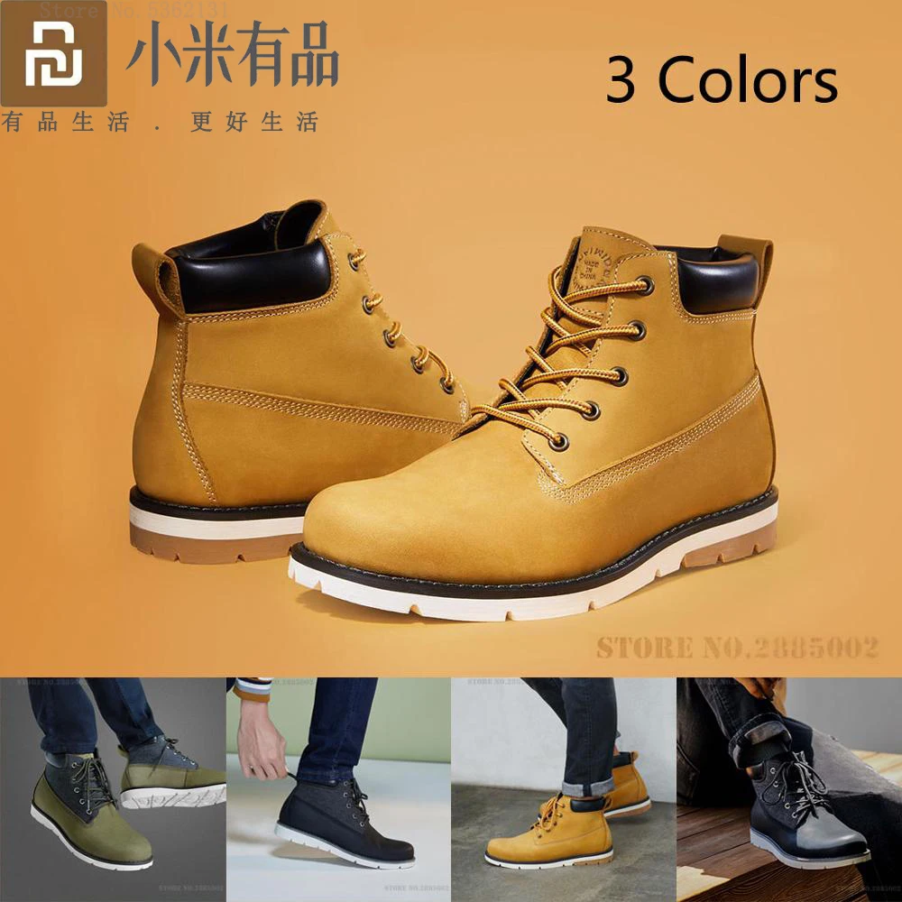 Flash Deal Xiaomi Youpin Qimian cowhide Men boots Casual Shoes Waterproof Non-slip Rubber Sole Wear Resistant Ankle Outdoor Warm Boots