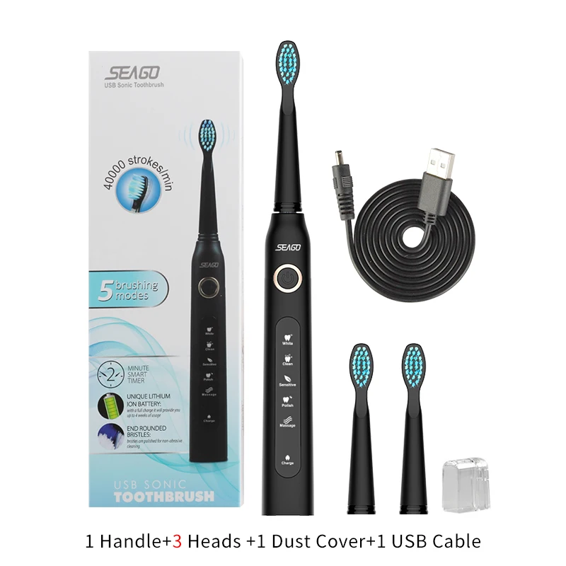 Best SEAGO Electric Toothbrush Rechargeable Buy One Get 1 Free Sonic Travel Toothbrush Head replacement Whitening Best Healthy Gift