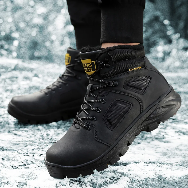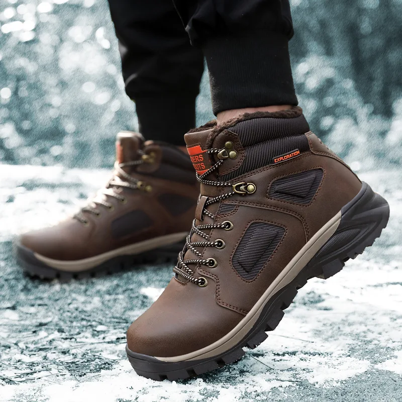 New Winter Warm Men Boots Climbing & Fishing Shoes Fur Plus Snow Handmade Waterproof Working Ankle Boot