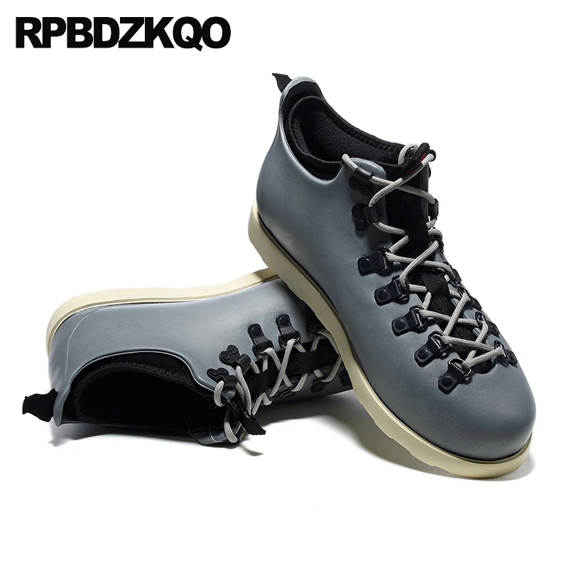 Special Product Trainer Rubber Fishing Boots Men Lace Up Green Rain Ankle Wedge Booties Camouflage Casual Shoes Pvc